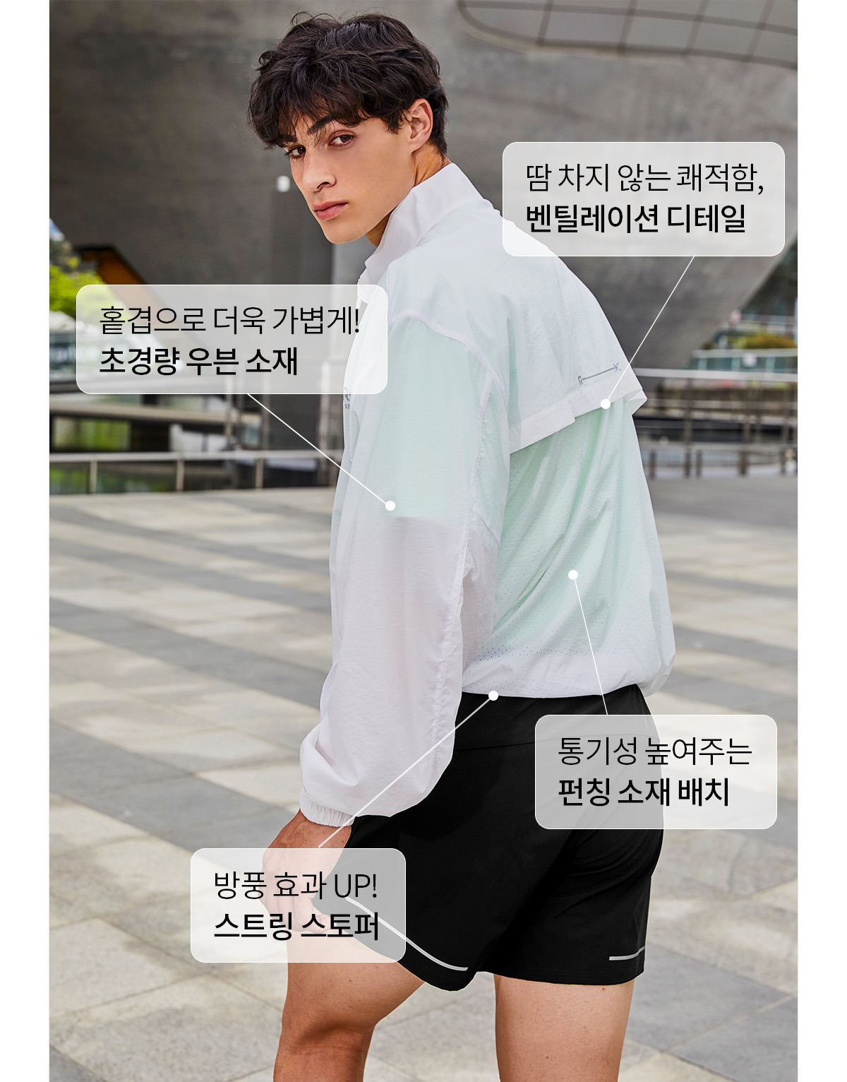 등 부위에 통기성을 위한 벤틸레이션이 들어간 바람막이는